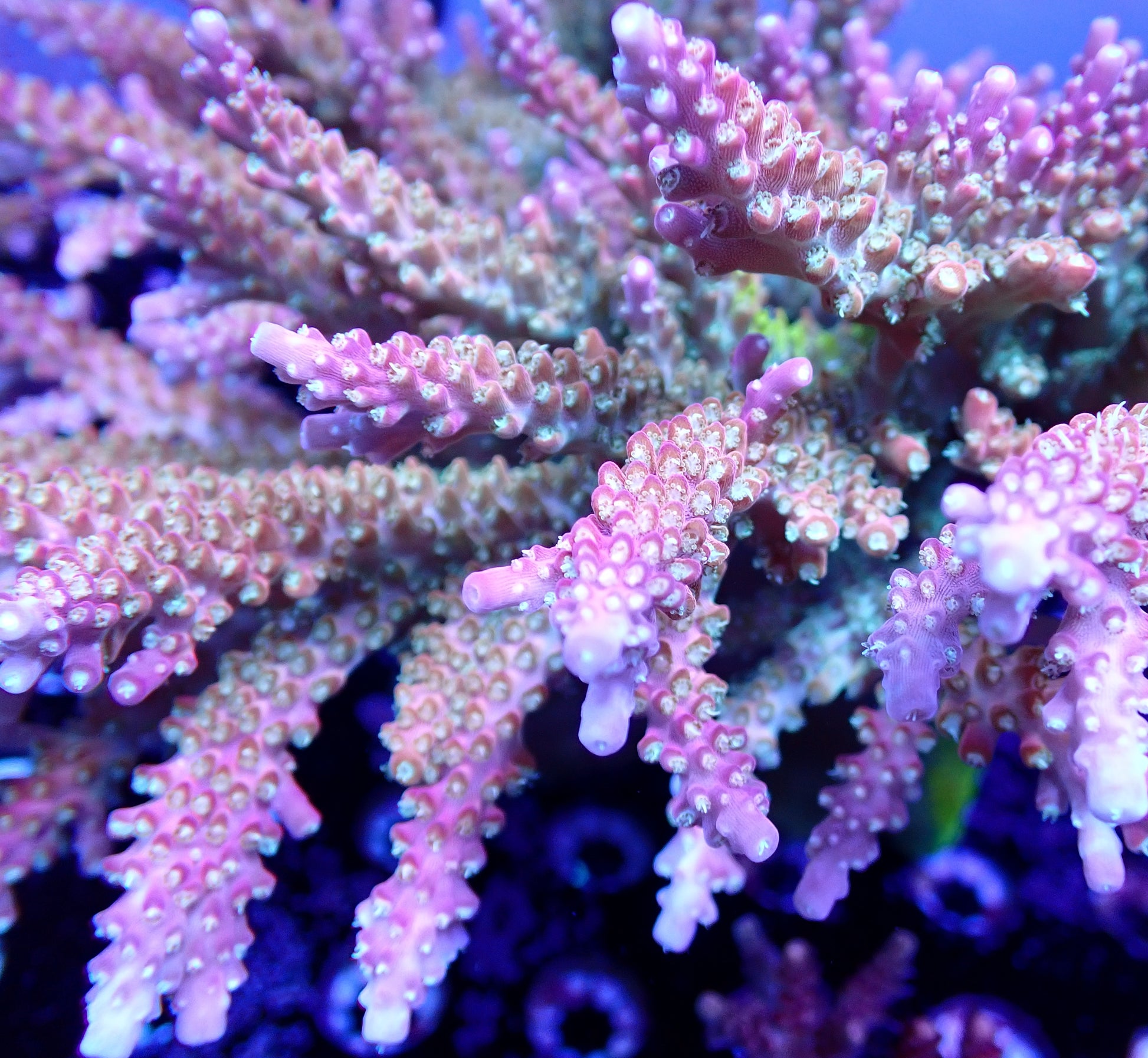 A beautiful and fast growing acropora that randomly develops fluorescent green 'grafting'.